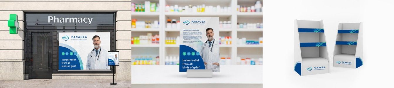 NOTE: PANACEA is our own imaginary healthcare brand. We use it as an example to show all of the different elements that we can work with for your specific healthcare campaign requirements.